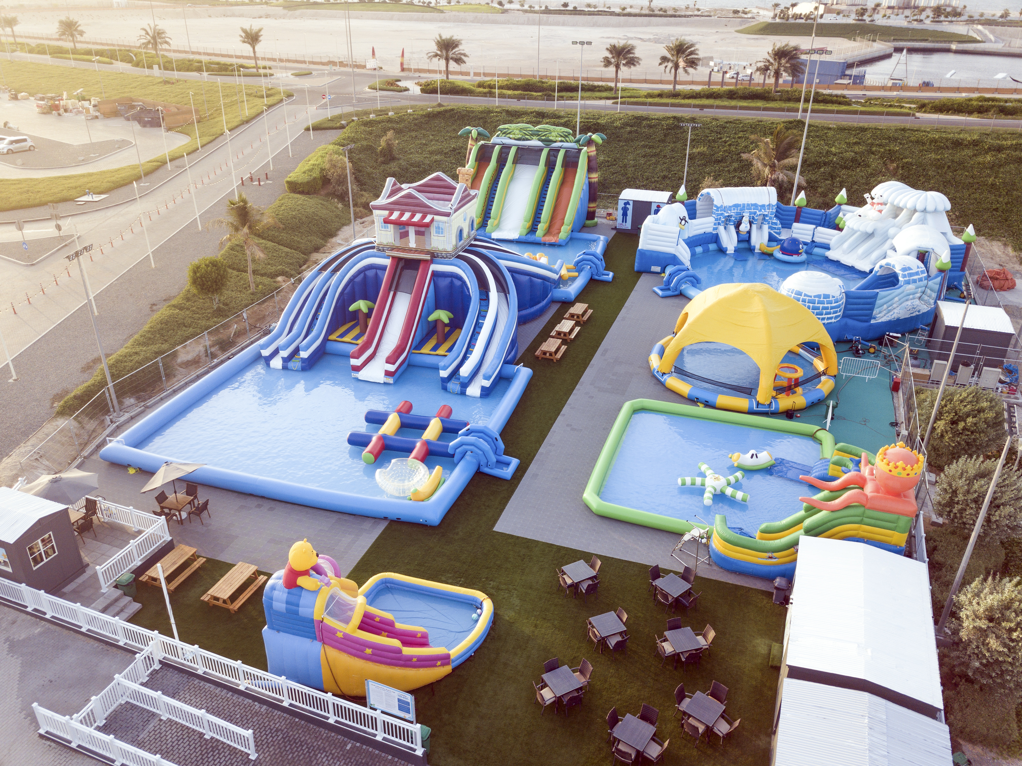 يمكن للأطفال قضاء وقتهم في عدد من الألعاب الخالدة مثل قوارب التصادم وحفرة الكرة ومجموعة من أروع القلاع والمنزلقات النطاطة. كما يمكن للأطفال والكبار على حد سواء الاستمتاع بالألعاب الأخرى التي تحفز الأدرينالين مثل لعبة القفز الخارق والترامبولين مع الوسادة الهوائية.